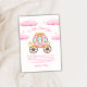 Pink cute adorable elegant "Little prince is on the way" , "once upon a time" baby shower theme, the perfect way to celebrate the new baby on the way with a fairytale princess themed baby shower. Perfect for a girl baby shower, design features pink gold vintage magical carriage on the pink cloud and stars, Personalize this baby shower invitation by adding names, date, time, venue and other details.