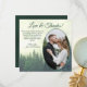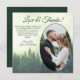 Ces belles cartes de remerciement de mariage sont une belle façon de remercier vos amis et votre famille d'avoir assisté à votre célébration de mariage. Ils présentent un design extérieur rustique avec votre photo mariage dans un cadre ovale sur un arrière - plan de pins de montagne verdoyants. Le titre dit "Amour & Merci" avec la place pour une note et signature personnalisée.