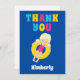 Incroyable carte de remerciement pour une fête d'enfants autour d'une piscine pour un enfant blond dans l'équipe de natation pendant l'été. Caractéristiques une explosion de couleurs vives et amusantes et une adorable fille nageant dans un tube intérieur.