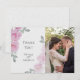 REMERCIEMENTS PHOTO | Ajoutez votre photo - Douces pivoines roses romantiques avec un feuillage de rose fraîche sur un fond de texture de papier de riz faux coquille d'œuf - texture de papier de riz coquille d'œuf au verso également. Une combinaison de calligraphie script associée à une mise en page de texte minimaliste et contemporaine en fait une suite de mariage dans le style tendance. Design créé pour TheBarefootBride™ par © WhimsicalArtwork™. Cela fait partie d'une collection de suites de papeterie de mariage avec des accessoires de mariage assortis ainsi que de la papeterie pour baby shower et autres occasions. N'hésitez pas à nous contacter si vous avez besoin d'aide.
