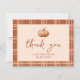Une façon de dire merci après votre baby shower citrouille d'automne! Ce carte de remerciements plat est doté de charmantes graphismes plaid et citrouilles qui capturent l'esprit cosy de la saison d'automne. Douchez vos invités de baby shower avec gratitude en utilisant cette adorable carte de remerciements plate. La douce petite décoration citrouille entourée de buffles classiques a vraiment fait express à la joie d'accueillir votre petit citrouille cet automne. Écrivez une note sincère à l'intérieur pour montrer votre appréciation pour les cadeaux, les voeux et l'amour. Cette carte plate est idéale pour toute personne qui souhaite accueillir ou assister à un baby shower sur le thème des chutes. Les couleurs et le design neutres de genre travaillent pour tout bébé. Envoyez ces cartes à plat rapidement après votre fête spéciale pour répandre des sourires!