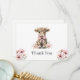 Montrez votre appréciation de la manière la plus charmante avec notre Carte de remerciements de vache Rose Highland! Doté d'une adorable vache des hautes terres entourée de délicats accents floraux, cette carte ajoute une touche rustique mais capricieuse à votre message sincère. Parfait pour remercier les invités après une fête d'anniversaire sur le thème de la ferme, une fête de la campagne ou toute occasion spéciale.