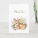 Carte de remerciements plié pour baby shower avec adorable aquarelle fawn niché au milieu des fleurs.