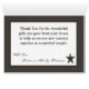 Ces adorables cartes de remerciements FOLDED sont parfaites pour remercier vos invités pour les cadeaux qu'ils ont apportés, ou même seulement pour leur compagnie à votre événement. Parfait pour un baby shower ou une fête d'anniversaire ! Ceux-ci sont entièrement personnalisables et le poème peut être supprimé complètement en supprimant simplement le texte tout ensemble pour laisser de la place à un message personnel écrit à la main, ou vous pouvez customiser avec votre propre poème ou texte. Ils sont imprimés sur le stock de couverture ultra-lourd de 120 lb (stock de carte). Chaque carte est livrée avec une enveloppe blanche. Nous avons une ligne entière consacrée à ce design ici à zazzle store sous l'onglet * Design Collections menu pour inclure des invitations (5x7), Étiquettes de retour, Étiquettes de messagerie, Envelope Seals, Timbres d'étape, Cup Cake Picks, Water Bottle Wrappers, Hershey's 1.55 oz. Grandes barrettes, Stickers miniatures Hershey's, Sac à Popcorn Micro-Ondes, Cartes de Place Écrits, Toppers à Sac, Cartes de Remerciement FLAT (4x5), Cartes de Remerciement FLADED (4x5), Balises de Faveur, Cartes de Menu, Cartes à Monnaie, Couvercles Lollipop, Signets, Cartes de Bingo, Cartes Marqueurs, Bingo Card Call Out Sheets, Writable Advice cards (4x5), etc.