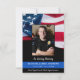 Drapeau américain avec ligne Bleue Mince Police Funeral Carte de remerciements dans un design américain moderne drapeau américain avec ligne bleue mince. Personnalisez ce carte de remerciements commémoratif de la police avec la photo, le nom et les dates de votre policier et le sentiment qui y est associé. Ce carte de remerciements funéraire d'application de la loi sera un trésor. Parfait pour des funérailles de police, des funérailles d'application de la loi, un service commémoratif de police ou une célébration de la vie de la police. Dans Loving Memory Police Mémorial Mince Ligne Bleue Drapeau. DROIT D'AUTEUR © 2020 Judy Burrows, Black Dog Art - Tous droits réservés. Carte de remerciements funéraire commémoratif de la police