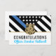 Cette conception comprend un drapeau de la police avec des rayures noires et blanches, ainsi qu'une fine bande bleue. Une excellente façon de féliciter le nouveau retraité ou diplômé pour sa retraite ou son diplôme de l'académie de police. Customisez avec le nom de l'agent d'application de la loi, du shérif, du capitaine ou du chef qui prend sa retraite ou qui est diplômé. Célébrez cette étape importante en style!