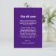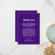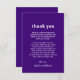 Carte de remerciements mariage de style moderne avec une disposition simple et minimale avec "merci" dans une police rétro super avec votre message personnalisé. Les couleurs vives sont colorées de joyaux toniques royal violet et blanc. Ce carte de remerciements non-mariage photo est idéal pour un couple marié qui veut un carte de remerciements sans photos. Ou si vous préférez, vous pouvez ajouter une photo à l'arrière ainsi que modifier les polices / couleurs dans l'outil d'édition de conception