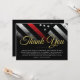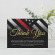 Cette conception comprend un drapeau de la police avec des rayures noires et blanches, ainsi qu'une mince bande bleue. Cette carte est idéale pour envoyer un message de remerciement à tous les invités qui ont assisté à la retraite de l'agent de l'application de la loi, shérif, capitaine, ou chef du parti de retraite.
