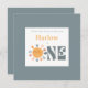 Premier voyage autour du soleil première invitation anniversaire. 1er anniversaire de sexe neutre thème garçon ou fille fête. Joyeux graphismes Sun lumineux avec des tons terreux. Police nette clair arrière - plan assorti décor de fête, vert jaune bleu orange pastels merci pour la fête