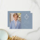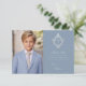 Une carte de remerciement de première communion vintage bleu poussiéreux et argentée recommandée pour un garçon.