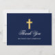 Élégante Première Sainte Communion Carte de remerciements avec Croix d'Or. Bleu de marine avec Croix d'or.