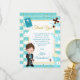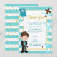 Carte De Remerciements Première communion de garçon brunette à rayure ble