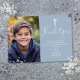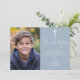 Cette carte de remerciement de première communion en écriture élégante bleu poussiéreux peut être personnalisée avec votre photo spéciale et votre message de remerciement dans une typographie chic. Conçue par Thisisnotme©
