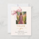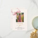 Un carte de remerciements moderne et élégant de la première sainte communion pour une fille. Arrière - plan de couleur crème douce, décoré d'un grand arc rose. Lettres noires et dorées. Sur le devant le texte : Merci, photo, nom, et une date. Retour : Modèle pour Votre mot de remerciement et nom.
