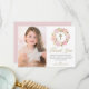 Les pivoines roses rousses portent la première Carte de remerciements de communion sainte. Carte à plat personnalisée avec des pivoines d'aquarelle rose et des roses avec feuillage, brindilles et accent de respiration pour bébé. Ce carte de remerciements photo floral sera également parfait pour le baptême et le baptême carte de remerciements.