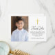 Elégant premier carte de remerciements de Communion avec le modèle photo et votre message de remerciement personnalisé. Faux or look cross (dégradé de couleur imprimé, PAS de papier peint réel) sur un arrière - plan de couleur blanc ou personnalisé. Vous pouvez modifier toutes les couleurs dans l'outil de conception.