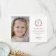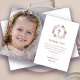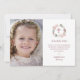 Simple et élégant carte de remerciements de la première sainte communion commence avec la photo de votre fille. Un message de remerciement modifiable est à droite. Ce carte de remerciements est coordonné avec la collection de Roses Barely Blush. Une jolie rose rose rose et une couronne de verdure entourent une croix rose mauve féminine. Vous trouverez également des modèles coordonnant l'enseigne d'accueil et la décoration de fête pour faciliter et faciliter votre planification de fête.