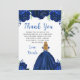 Cette carte de remerciement pour fête d'anniversaire présente de fausses paillettes fleurs florales bleues marine et une belle princesse aux cheveux blonds et une robe élégante. C'est parfait pour une fête d'anniversaire.