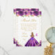 This elegant and glamorous birthday thank you card features a beautiful princess with blonde hair and fair skin in a dark purple ball gown. The text combines handwritten script and modern sans serif fonts for a classy and sophisticated look. The floral arrangements, butterflies and gold confetti create the perfect blend of rustic and chic.