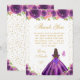 Carte De Remerciements Purple Floral Brunette Hair Princess Sweet Sixteen