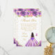 This elegant and glamorous birthday thank you card features a beautiful princess with dark hair and dark skin in a purple ball gown. The text combines handwritten script and modern sans serif fonts for a classy and sophisticated look. The floral arrangements, butterflies and gold confetti create the perfect blend of rustic and chic.