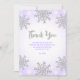 Un mignon carte de remerciements plat d'hiver violet et argent. PARTIES SCINTILLANT NON RÉELLE