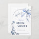 La collection de baby shower "Something Blue Before I Do" offre un mélange parfait d'élégance et de charme bohème. Le design met en valeur une arche gracieuse ornée d'un délicat nœud bleu, créant une ambiance sereine et sophistiquée. Autour de l'arche, des fleurs bleues peintes à la main à l'aquarelle ajoutent une touche de beauté fantaisiste. Les détails floraux complexes sont complétés par des lignes subtiles et fluides qui évoquent une élégance naturelle. Cette papeterie capture l'essence de la tradition avec une touche moderne, ce qui en fait un choix idéal pour célébrer le jour spécial de la future mariée dans le style. La palette bleue apaisante non seulement honore la coutume de mariage chérie, mais crée également une atmosphère calme et invitante pour les invités. Veuillez nous contacter pour une assistance de conception via Zazzle Chat