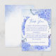 Modèle de carte de remerciement pour une fête prénuptiale avec un arche florale élégant d'hortensias bleus, fleurs botaniques aquarelles, fond aquarelle bleu clair, écriture moderne décontractée.
