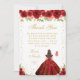 This elegant and glamorous birthday thank you card features a beautiful princess with brunette hair and fair skin in a red ball gown. The text combines handwritten script and modern sans serif fonts for a classy and sophisticated look. The floral arrangements, butterflies and gold confetti create the perfect blend of rustic and chic.