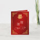 This traditional Chinese wedding thank you card features an artistic gold double happiness symbol and a golden Chinese frame on a shimmering ruby red background and an elegant classy calligraphic script. Add your wedding photo at the inner side of the card.