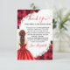 Express your gratitude with elegance using these custom Quinceañera thank you cards. Featuring a beautiful girl in a vibrant red gown surrounded by lush red roses and gold glitter confetti, this card perfectly captures the joy of your sweet 15 celebration.