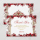 Carte De Remerciements Red Golden Tiara Floral Quinceañera
