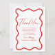 Carte De Remerciements Red White Elegant Wavy Border Photo Wedding