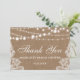 Carte de Remerciement de Fête de Mariage Rustique Lumières de Guirlande de Toile de Jute Dentelle