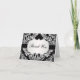 Carte de remerciement de mariage avec motif damassé blanc à motif de feuilles sur fond noir. Vous pouvez ajuster le texte selon vos besoins.