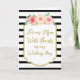 Carte de remerciement classique à rayures noires et blanches, or et aquarelle rose vintage florale pour la mère de la mariée le jour de votre mariage.
