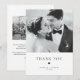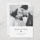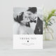 Carte de remerciement de mariage de typographie noire d'élégance moderne | Envoyez des remerciements à votre famille et à vos amis pour avoir partagé votre jour spécial avec cette carte de remerciement de mariage personnalisable. Elle présente une typographie minimaliste avec une illustration de cœur. Mettez en avant votre photo de mariage préférée sur le devant de la carte et ajoutez une autre photo au dos de la carte. Cette carte postale de remerciement est disponible dans d'autres couleurs.