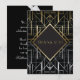 Classique et Sophistiqué, Noir et Or dans le style Art Déco des années 20, Style Gatsby des Années Folles Vintage et Élégant, avec un thème "Gatsby le Magnifique" des années 1920 dans des tons noir et or. Un fond noir met en valeur le design complexe de style Art Déco et la lettre créée dans un dégradé d'or.