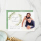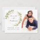 Cartes de remerciement de mariage avec feuilles de aquarelle vert sauge et blanc avec cadre géométrique doré.