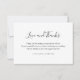 Carte de remerciement traditionnelle minimaliste et propre pour un mariage avec du texte noir sur fond blanc uni, polices de caractères scripturées de bon goût et possibilité d'ajouter une photo de mariage au verso. Ce design classique, simple et élégant de amour et de remerciement est noir et blanc avec des détails de police scripturée.