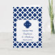 Cartes de remerciement de mariage avec monogramme et motif quatrefoil bleu royal et blanc.