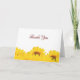 Ceci est Cartes de remerciement de mariage Tournesol avec un fond blanc et une écriture script élégante des mots "Merci" en brun. L'intérieur est vierge. Celles-ci sont parfaites pour les cartes de remerciement de mariage.