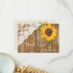 Cette carte de remerciement plate présente une image époustouflante d'un tournesol doré brillant qui apparaît du côté droit d'un fond en panneau de bois lumineux. Le tournesol touche une bordure d'angle en dentelle blanche charmante à gauche. Votre texte personnalisé est en blanc en bas. Le dos de la carte est d'un brun clair doux, avec une image plus petite du tournesol, et une zone vierge pour votre propre message. *Ce design utilise des illustrations florales de LeCoqDesigns.