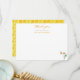 Une jolie carte de remerciement plate pour baby shower de mariée avec une seule fleur de marguerite et une abeille en vol stationnaire. "merci" est écrit en police de calligraphie moderne jaune et un motif de nid d'abeille à l'aquarelle au verso.