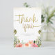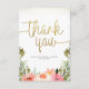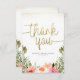 Carte De Remerciements Remerciement en écriture dorée | Fleurs aquarelles