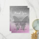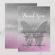 Adorable, élégante, fantaisiste, rêveuse carte de remerciement pour baby shower, avec fond pailleté papillon rose violet et argent.