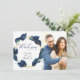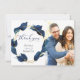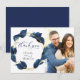 REMERCIEMENTS PHOTO | Ajoutez votre photo - Un feuillage luxuriant bleu indigo moderne entoure un cadre doré à facettes - des reflets brillants sur les feuilles et un revers bleu indigo foncé. Une combinaison de calligraphie moderne et d'une mise en page de texte minimaliste et contemporaine en fait une suite de mariage dans l'air du temps. Design créé pour TheBarefootBride™ par © WhimsicalArtwork™. Ceci fait partie d'une collection de papeterie de mariage avec des accessoires de mariage assortis ainsi que de la papeterie pour baby shower et autres occasions. N'hésitez pas à nous contacter si vous avez besoin d'aide.