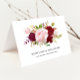 Cette carte de remerciement tropicale rouge et romantique est parfaite pour un mariage simple. Le design artistique bordo marsala présente des roses en aquarelle, vertes, roses, bordeaux et blush assorties de verdure soigneusement disposées dans un bouquet de fleurs gracieux et radieux.