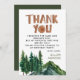 Carte de remerciements d'anniversaire pour enfants avec arbres et montagnes rustiques aquarelle.