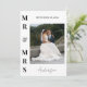 Célébrez votre jour spécial avec style grâce à cette carte de remerciement de photo de mariage personnalisée classique et élégante. Avec un design audacieux « M. & Mme » associé à votre nouveau nom de mariée dans un script de calligraphie fluide, cette carte moderne minimaliste est le moyen idéal de partager votre gratitude avec votre famille et vos amis. Le verso comporte un message de remerciement pré-imprimé que vous pouvez entièrement personnaliser pour refléter votre appréciation sincère pour l'amour, le soutien et les cadeaux attentionnés de vos invités. Ajoutez votre photo de mariage préférée pour une touche personnelle qui sera chérie par tous ceux qui la recevront. Un souvenir intemporel qui allie sophistication et sentiment.